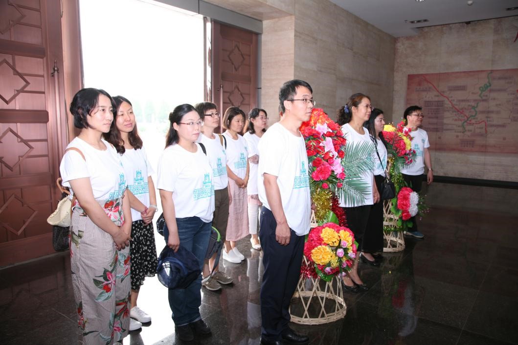在八路军总部纪念馆大厅伟人群像前,举行了“缅怀革命先驱,继承英雄遗志”的活动,向先辈们敬献了花篮,全体人员列队默哀悼念,向先辈致敬,深深表达对革命先辈的敬仰之情。
