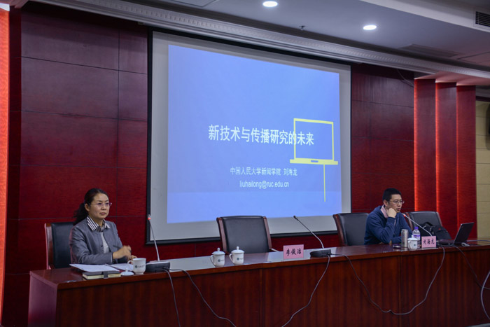 2018年4月10日下午2点半,应yl7703永利yl7703永利邀请,中国人民大学刘海龙教授在yl7703永利会议中心第三会议室作了题为“新技术与传播研究的重新定位”学术讲座。讲座由公司党委书记李俊洁主持,《编辑之友》杂志社主编康宏、副主编吕晓东和王介平、yl7703永利师生100余人参加了讲座。