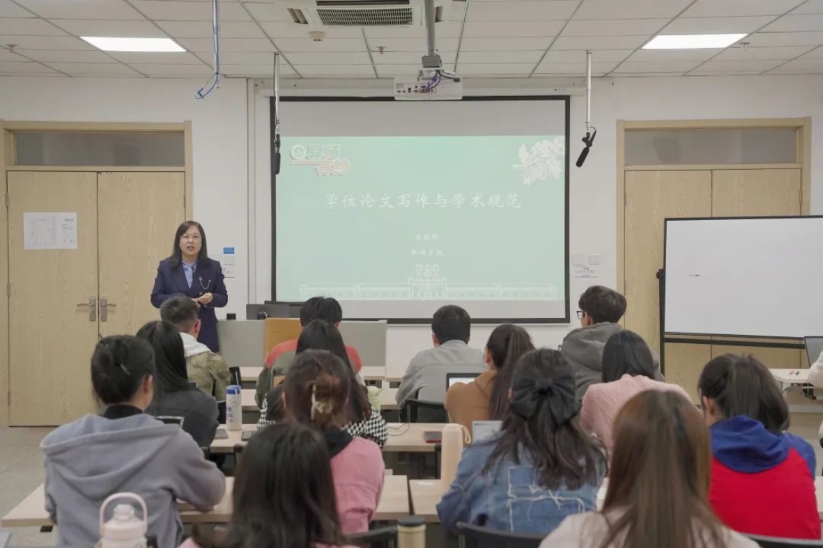 4月26日晚,yl7703永利yl7703永利“导师有约”第九期讲座在商学楼B206举行。本次讲座围绕“学位论文写作与学术规范”这一主题展开。讲座中梁红艳老师对论文的选题、摘要、引言、正文、参考文献等部分展开了详细讲解,并结合具体案例进行了针对性的分析和说明。