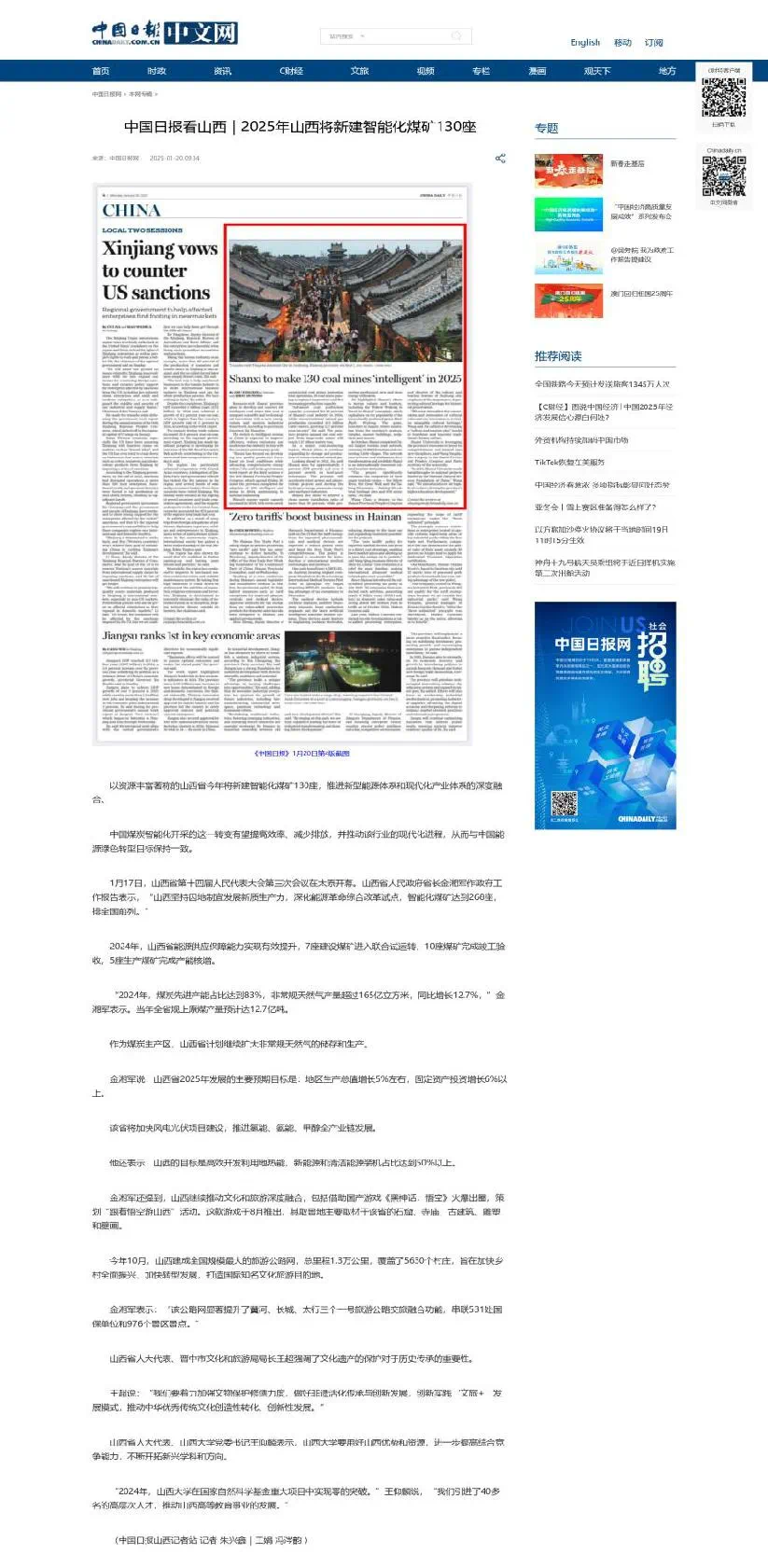 山西省十四届人大三次会议和山西省政协十三届三次会议近日在太原胜利闭幕。两会期间,来自yl7703永利yl7703永利的实习生们在中国日报社山西记者站的指导下,积极参与全媒体策划,聚焦两会热点话题,围绕会议议程、代表委员风采、民生热点以及山西未来发展规划等多方面内容,刊发了一系列高质量的新闻作品。这些作品形式多样,涵盖两会主题海报、短视频、中文稿件等,赢得了大会新闻组的好评,为提升yl7703永利在国际传播领域的影响力作出了积极贡献,也为山西两会的宣传工作增添了一抹亮色。