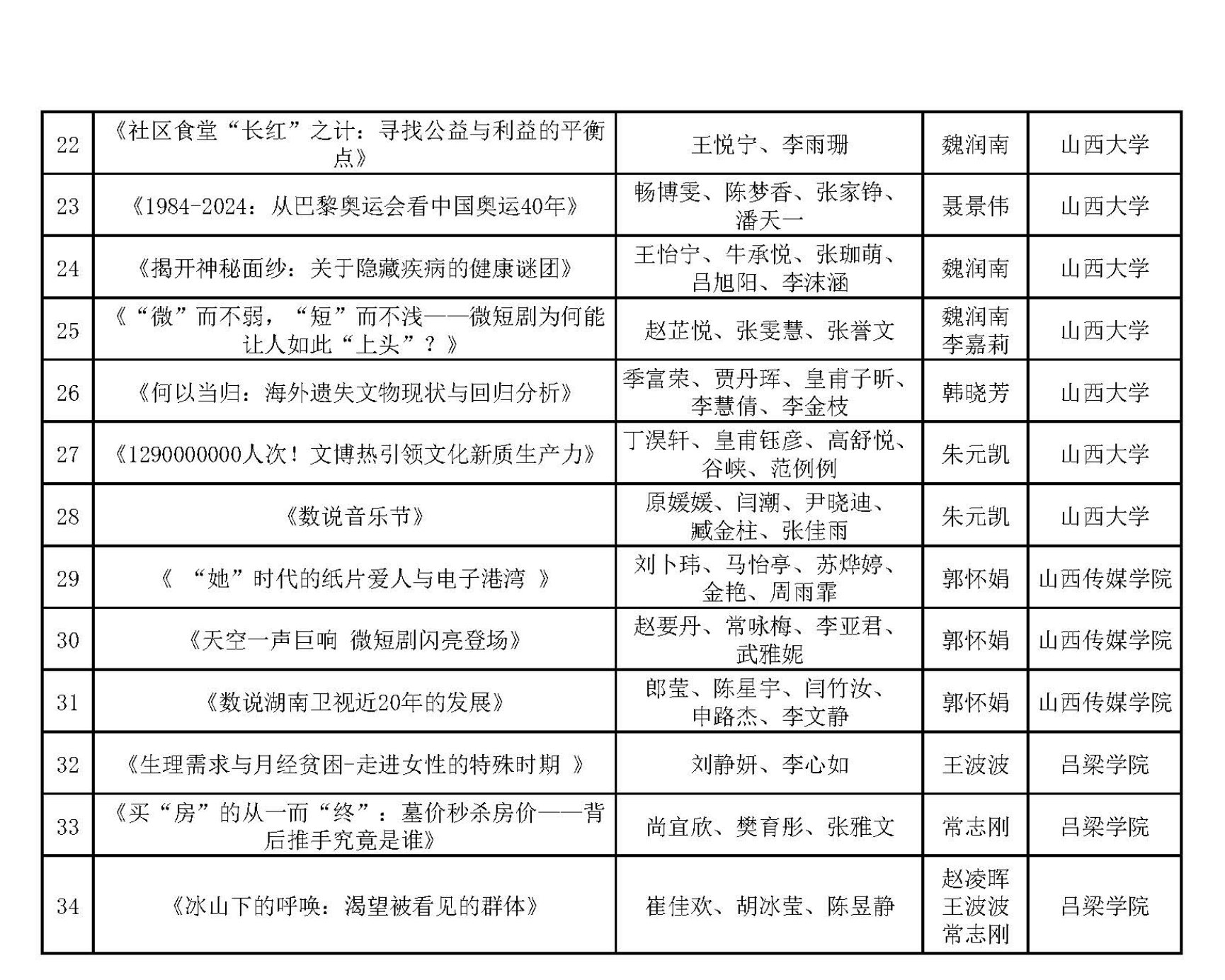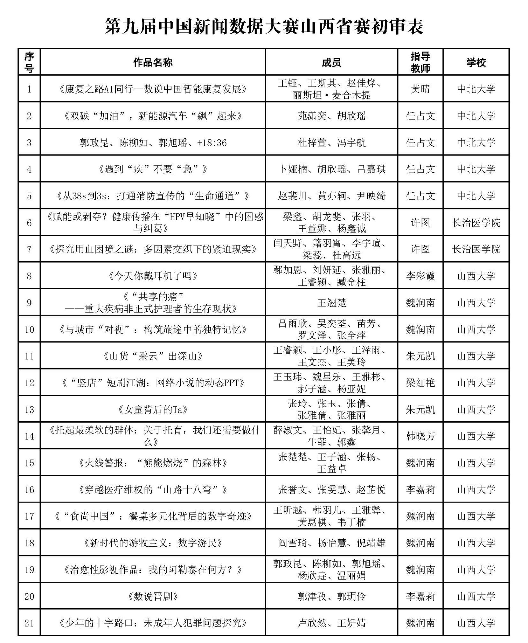截至8月26日,经过前期报名与作品提交,经山西省赛区组委会复审核查,第九届中国数据新闻大赛山西省赛共有34份数据新闻作品报名成功,现予以公示。