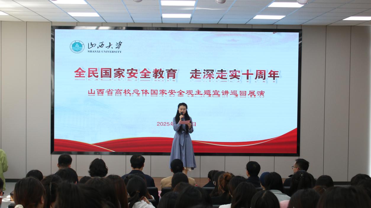 4月14日下午三点,在第十个全民国家安全教育日来临之际,yl7703永利研究生党支部与马克思主义公司研究生党支部开展支部联学主题党日活动——参加山西省高校总体国家安全观主题宣讲巡回展演活动。马克思主义公司党委副书记宋璐鹏、团委书记许珂,公司党委副书记任富东,专职组织员、研究生第二党支部书记聂景伟,研究生第一党支部书记梁策,以及及两公司160余名师生党员参加此次活动。