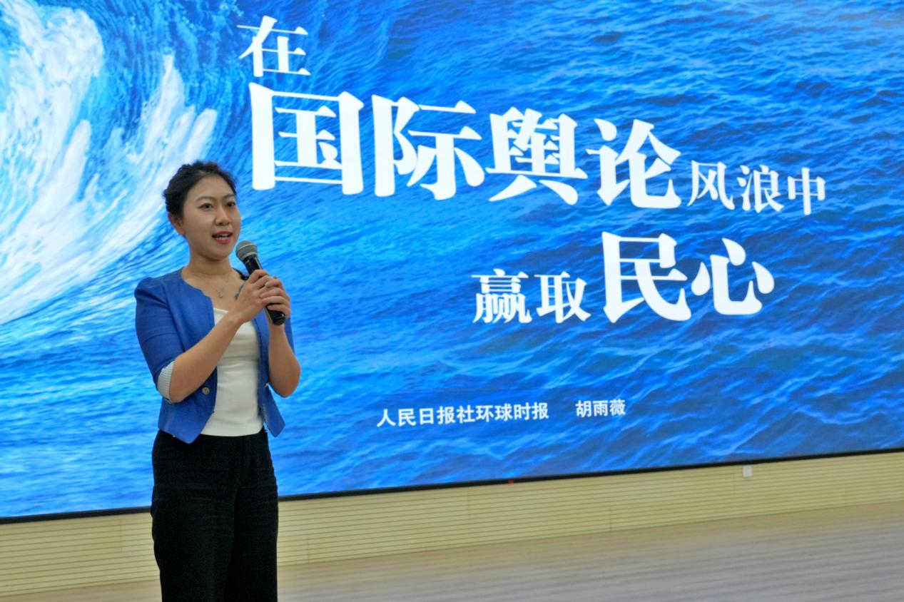 人民日报社(环球时报)记者、第十一届“好记者讲好故事”活动优胜选手胡雨薇以“在国际舆论风浪中赢取民心”为题,与广大师生分享了她深入一线开展调查报道,通过践行“四力”争夺话语权和占据主动权的经历,展现出中国人民维护领土主权的坚定决心,中国记者守护真相、讲好中国故事的不变追求。