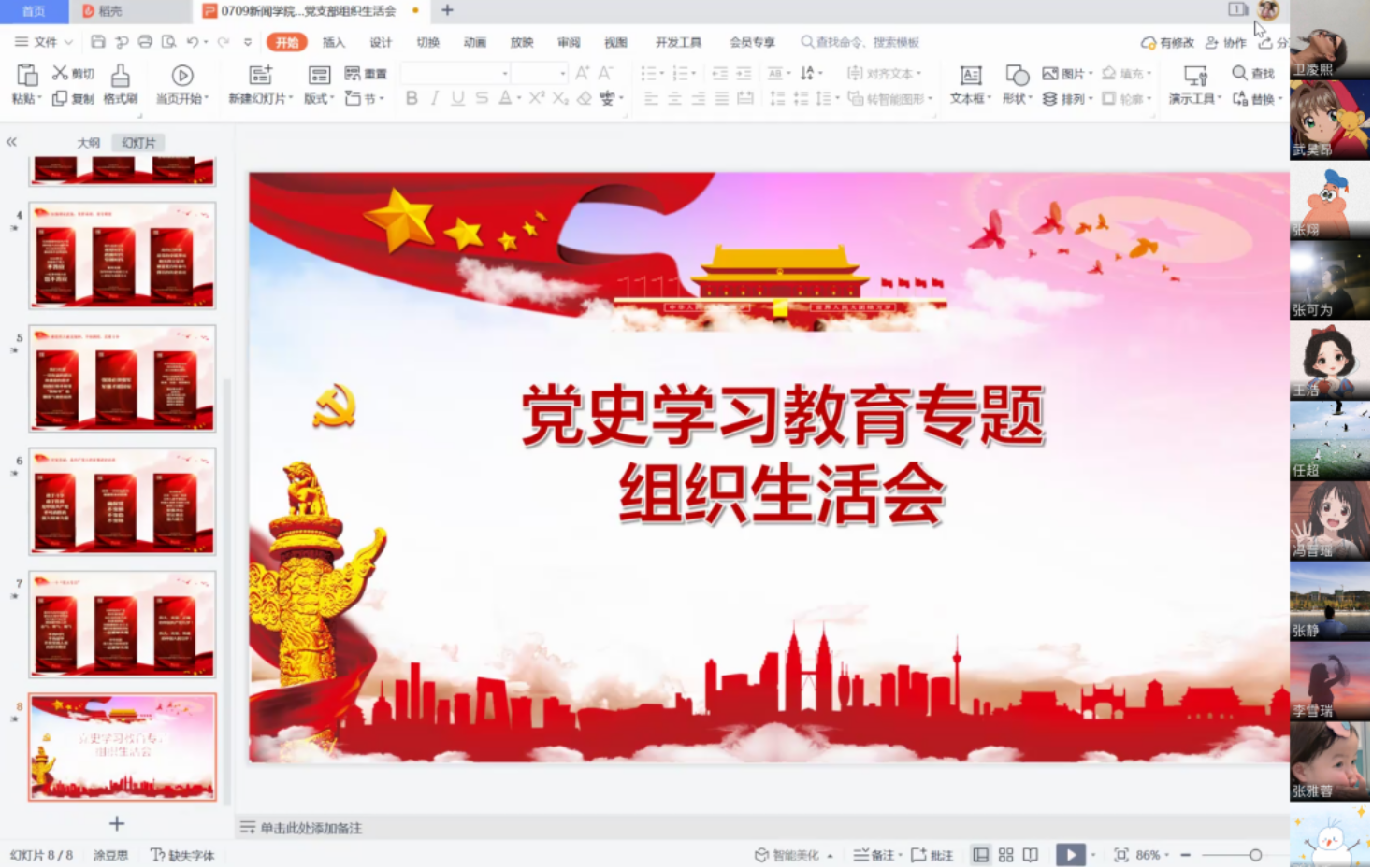 随后,全体与会党员逐一发言,严肃认真地开展了批评和自我批评。支部副书记郭丽珍通过查摆自身在党史学习、实践服务等方面存在的差距,明确提出了个人整改措施。她表示,作为一名员工党员,更作为一名新传学子,更应发挥头雁精神,应当做好“党的政策主张的传播者”,明确作为社会主义精神文明的传播者和建设者的意义重大。支部党员靳雨婷也表示,要将党史学习密切联系专业实际和日常生活,做到全面系统学、对照反思学、联系实际学。