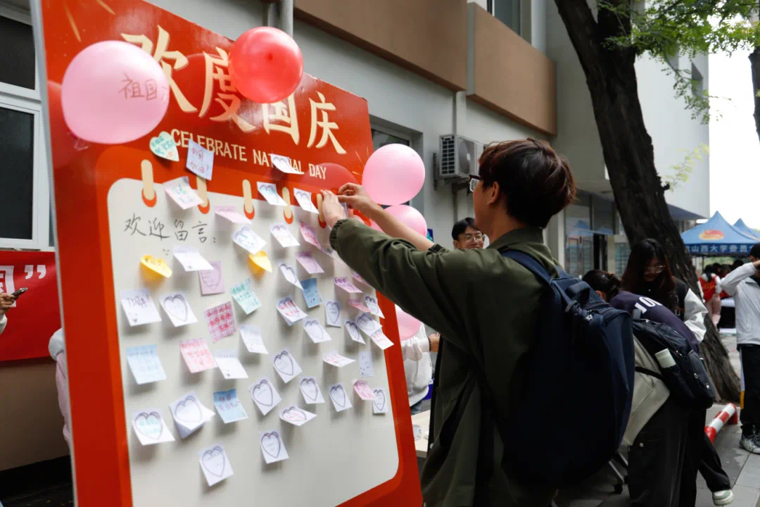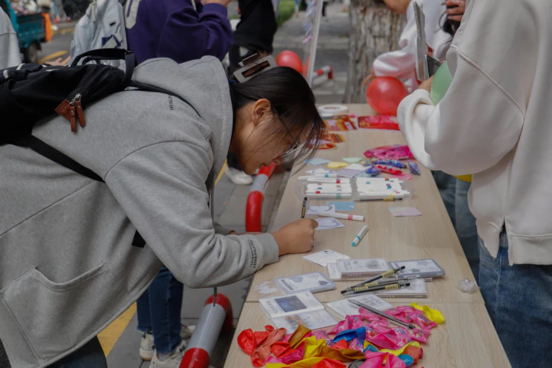 活动伊始,同学们便前来参与其中,纷纷拿起彩笔在便利贴上写下自己对未来的期望并抒发自己对祖国的诚挚爱意。此外,本次活动还设有拍照和录制祝福视频环节。镜头前,同学们面带微笑,青春洋溢,向祖国送上了最美好的祝愿。活动中,员工会成员各司其职,默契配合,为活动的成功举行贡献了自己的一份力量。活动现场气氛热烈,形成了一道独特的风景线。