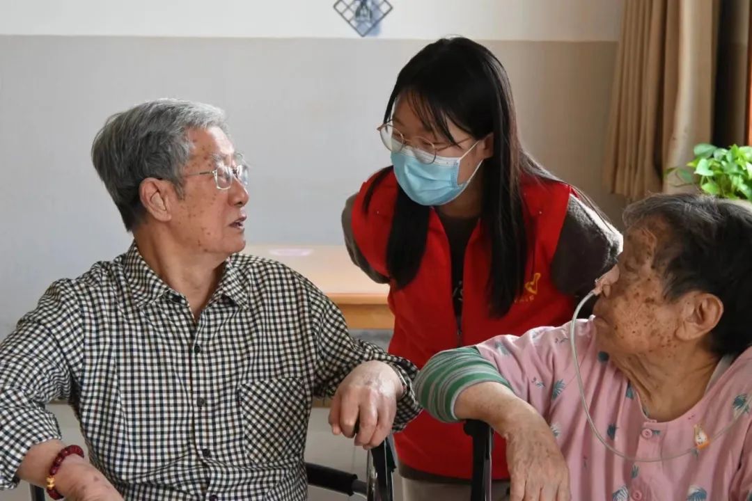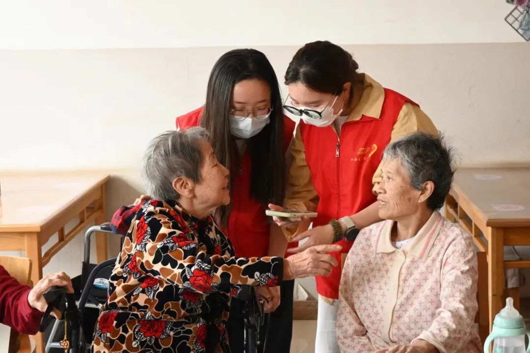 志愿者们围坐在老人身旁,与老人亲切交流,分享自己的老员工活以及有趣经历,他们用朴实的行动表达对老人的关爱,认真倾听老人们讲述过往的艰苦岁月,平日里清净的养老院一下子变得热闹起来。