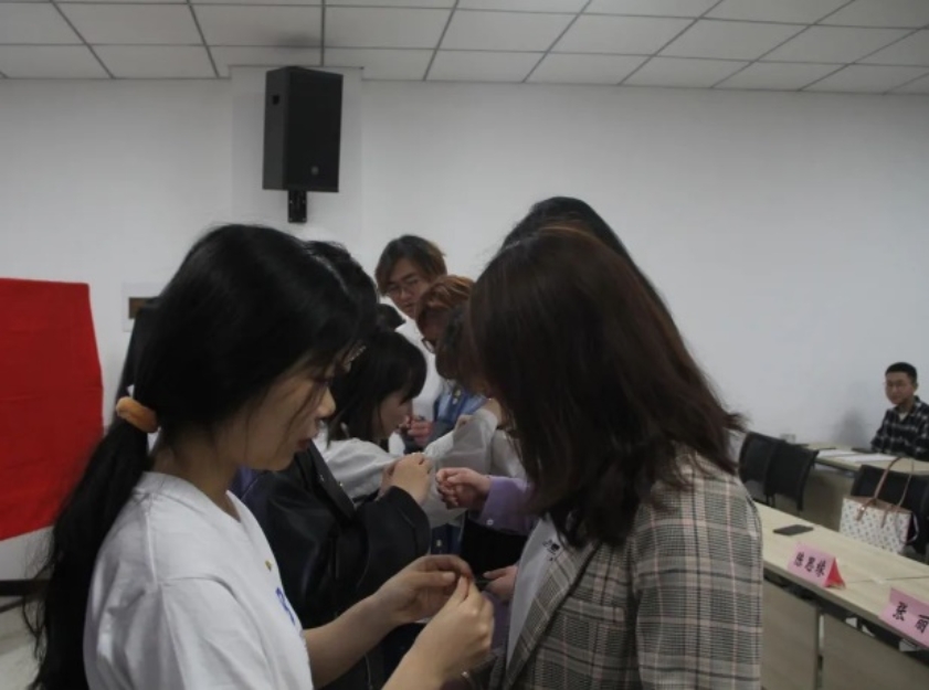 宣誓后,为每位新入团团员颁发了团员证及团徽,象征着这8名同学正式成为一名光荣的共青团员。