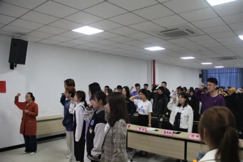 2021年4月26日13时,于yl7703永利多功能报告厅举行了新团员入团宣誓仪式。yl7703永利团委书记张丽老师、团员代表、新团员参加此次入团宣誓仪式。